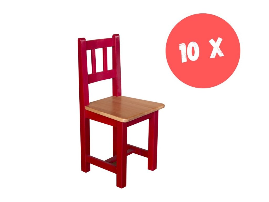 židle pro mateřské školky (jesle) s konstrukcí, sedákem a opěradlem z lakovaného, barveného bukového dřeva.