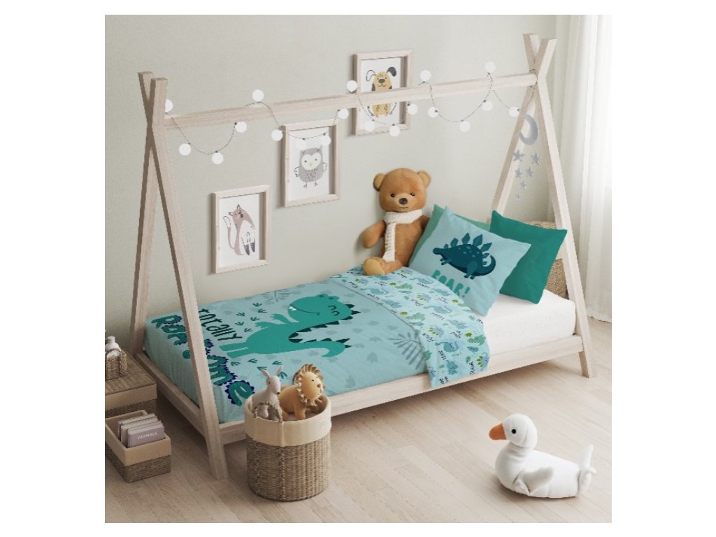 VÝHODNÁ NABÍDKA - 10 x SET - bavlněné povlečení do MŠ - HRAVÝ DINOSAURUS