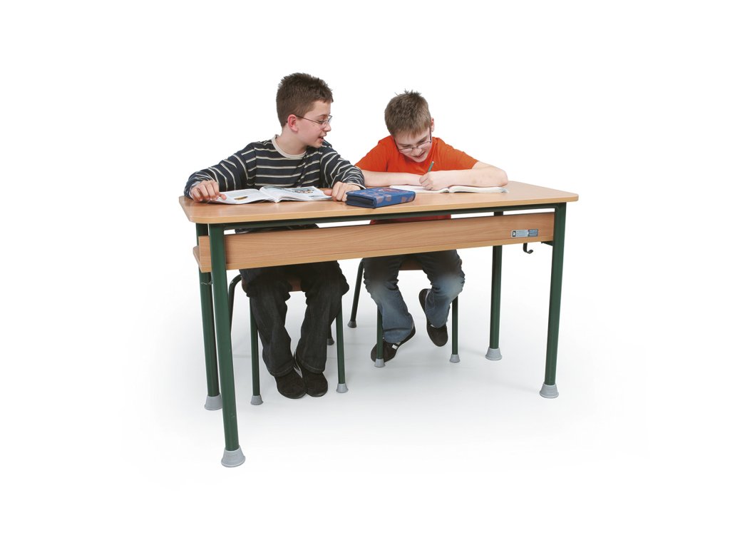 Dvojmístná žákovská lavice má konstrukci vyráběnou z ocelové trubky o průměru 40 mm, konstrukce jsou opatřeny plastovými koncovkami.