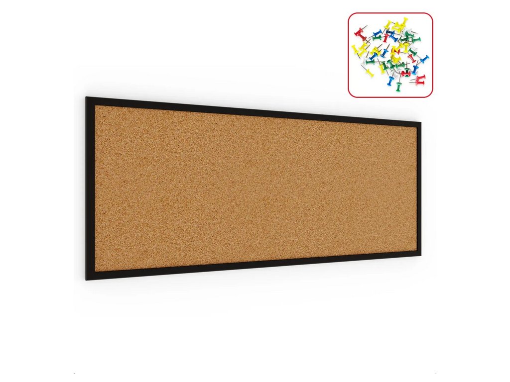 100 x 40 cm - korková nástěnka - dřevěný černý rám
