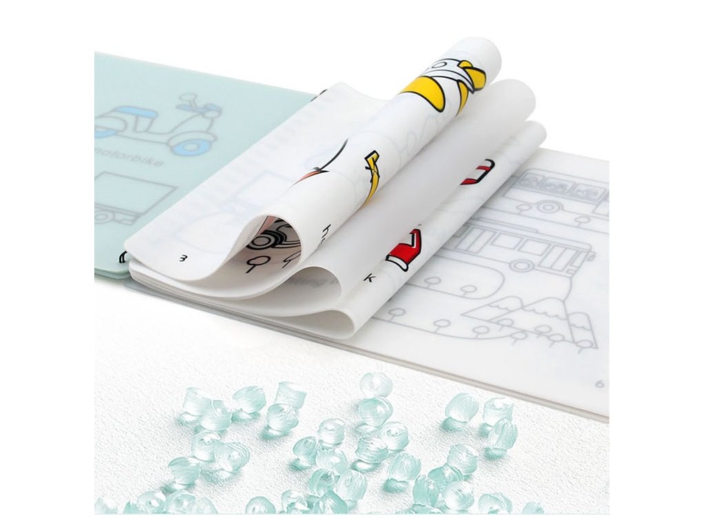 Mezi každým potištěným listem je prázdný silikonový list buď k obkreslování předtištěných obrázků, nebo ke kreslení dle vlastní představivosti.