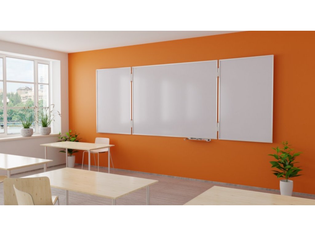Rozkládací magnetická tabule o rozměrech 100x200cm patří k největším trojdílným tabulím na trhu. Skvěle tak poslouží jako dominanta velkých školních tříd i jako nástroj pro prezentace ve vaší kanceláři.