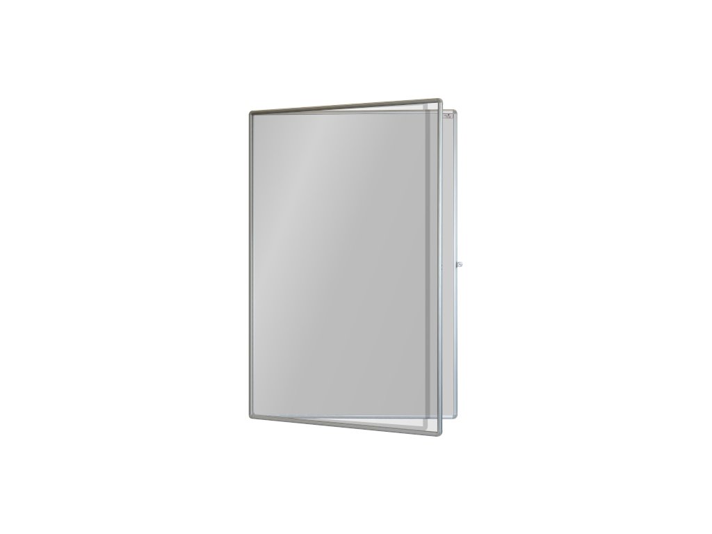 - Vitrína je opatřena kvalitním elegantním rámem z eloxovaného hliníkového profilu ve stříbrném odstínu s šedými plastovými rohy.
