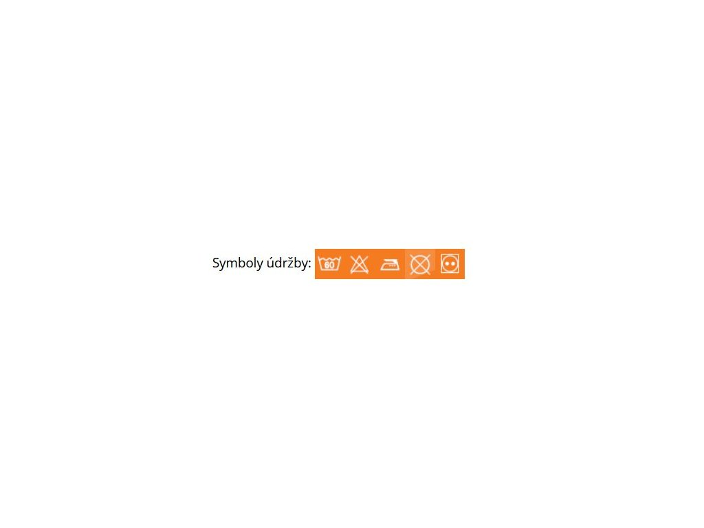 Prát do 60 °C – sušit vyvěšené ( pokud je u výrobku dovoleno sušení v sušičce, sušit na nízkou teplotu) – žehlit na 150 °C – nebělit – nečistit chemicky.