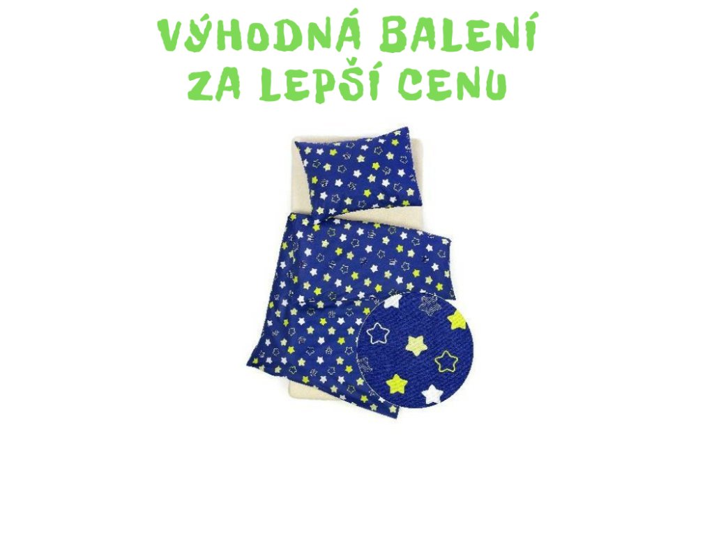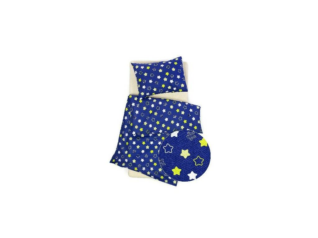 VÝHODNÁ NABÍDKA - 10 x SET - krepové povlečení do MŠ - Hvězdy modré