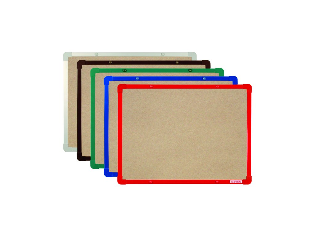 - Nástěnka je opatřena rámem z hliníkového barevného profilu (stříbrná, červená, modrá, zelená nebo hnědá). Plastové rohy mají stejnou barvu jako rám. Díky tomu si můžete vybrat vzhled vhodný do jakéhokoli interiéru.