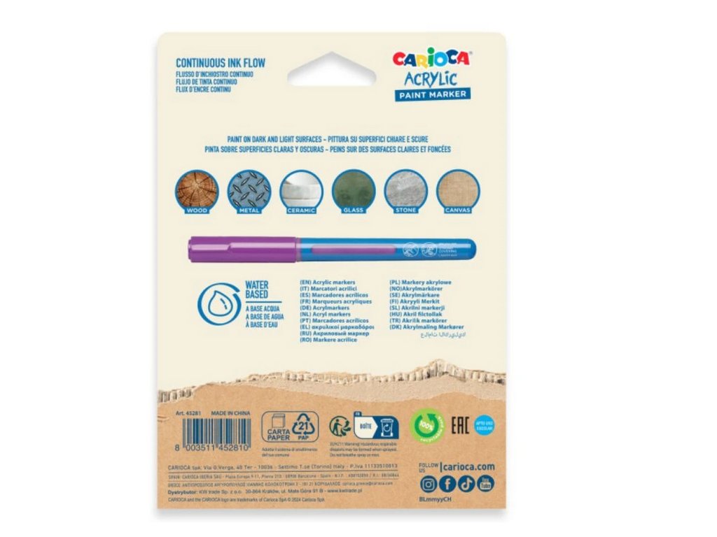Carioca Acrylic - akrylové fixy - 10 ks - Všestranný nástroj pro vaši kreativitu