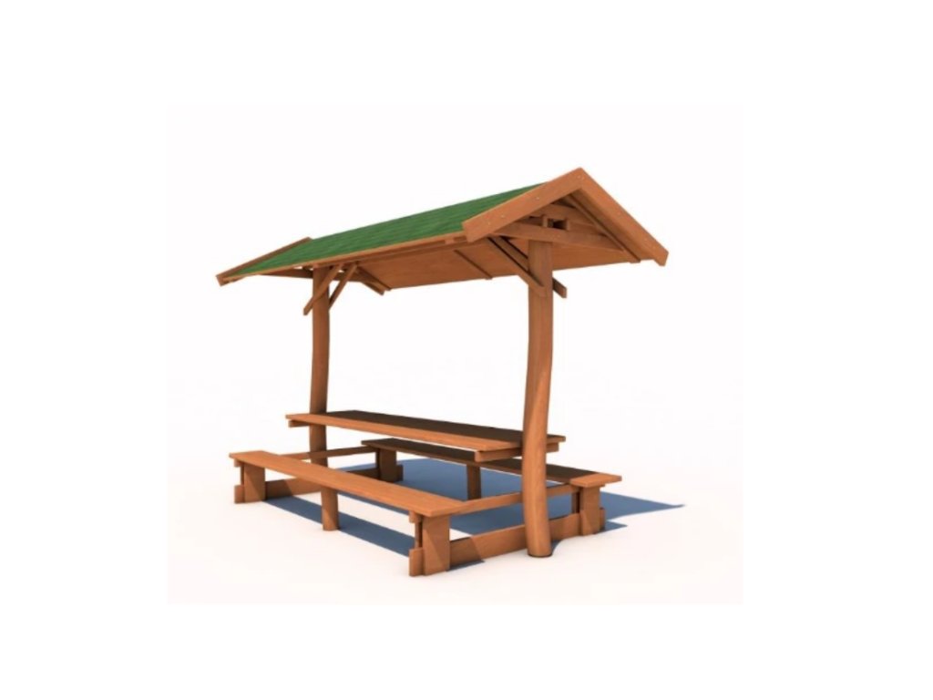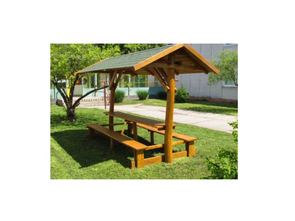 Masivní menší altán vyrobený z kvalitního a odolného akátového dřeva, vhodný pro veřejné prostory například k cyklostezkám, do parků zahrad MŠ i základních škol, uplatnění jistě najde i v soukromých zahradách.