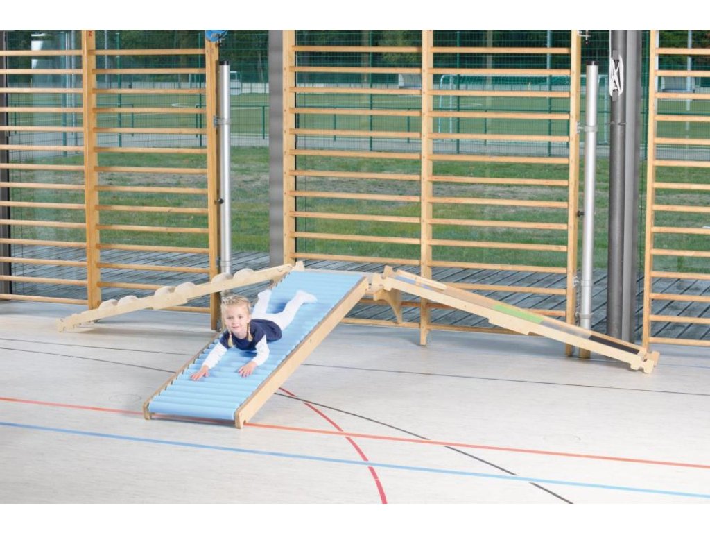 Desku lze jednoduše zavěsit za standardní žebřiny se šprušlemi o průměru 35 mm. Horní deska slouží nejen k zavěšení balančních laviček a klouzačky ale také jako praktické sedátko, na kterém se malí gymnasti mohou v klidu připravit například ke sklouznutí.