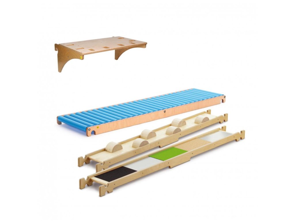 Obsahuje: závěsnou desku na žebřiny, válečkovou klouzačku rovnou, balanční lavičku větve, balační lavičku mix materiálů.