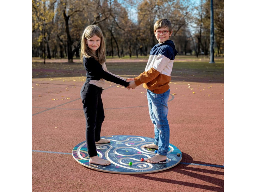 Balanční hra Týmový disk je komplexní balanční hra s potiskem odolným proti poškrábání, kterou mohou děti i dospělí hrát nejrůznějšími způsoby. Od klidné hry pro jednoho až po komunikativní dvojice, trojice a čtveřice, pro balancování na zemi i v rukách, variací je mnoho.