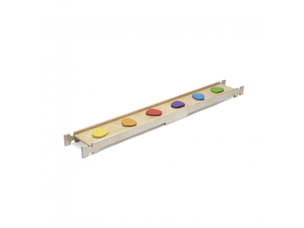Šest různých barev balančních kamenů přináší do tělocvičny kromě různých možností zadávání úkolů v rámci hry také veselý barevný nádech.