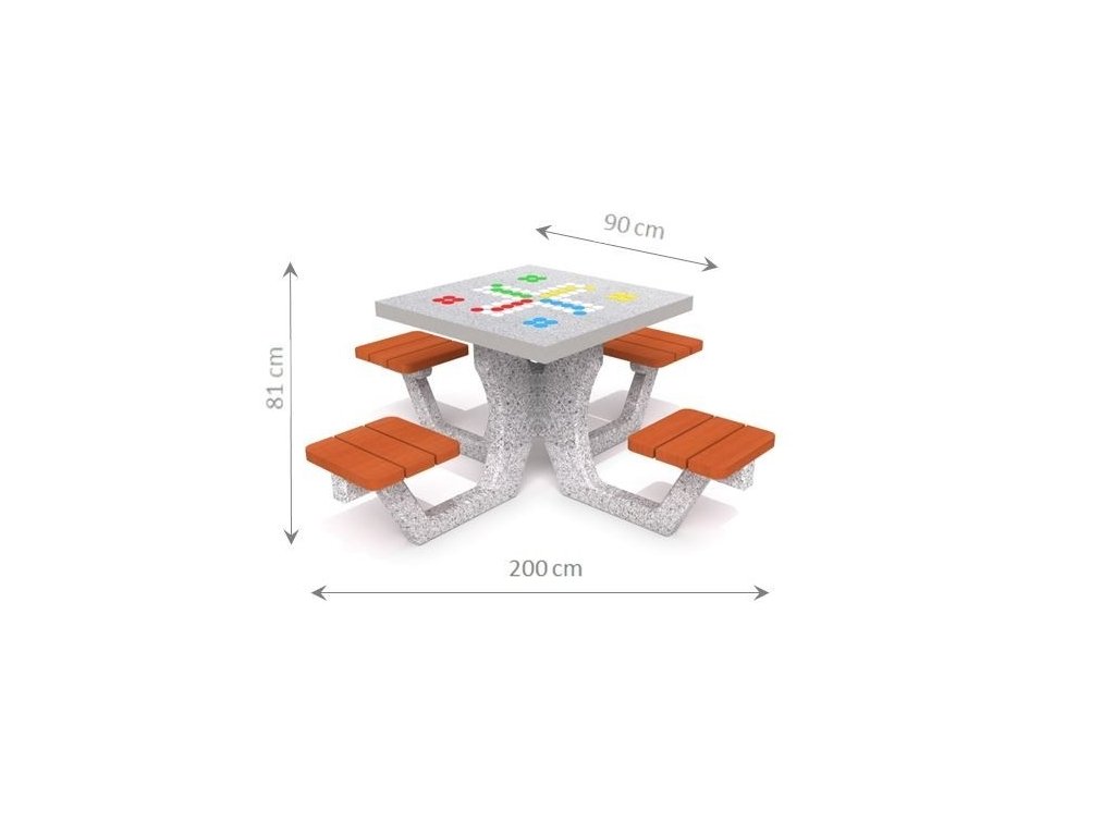 Betonový set 4* stolička okolo stolu s herní deskou čtverec - "člověče nezlob se" pro venovní použití.