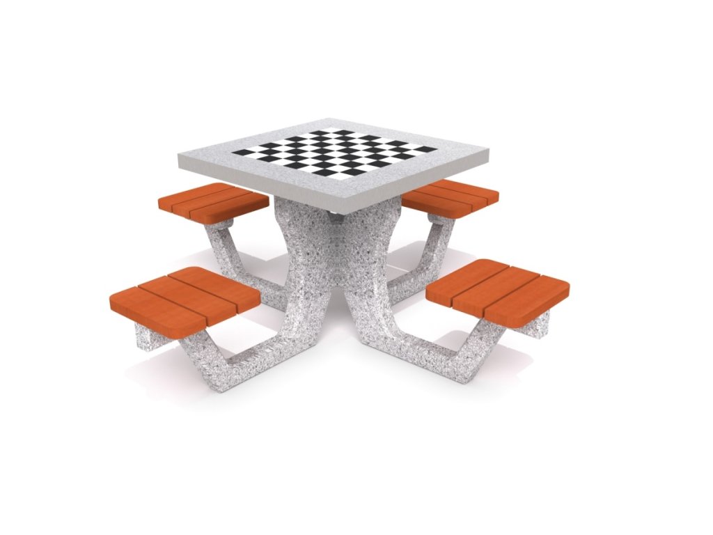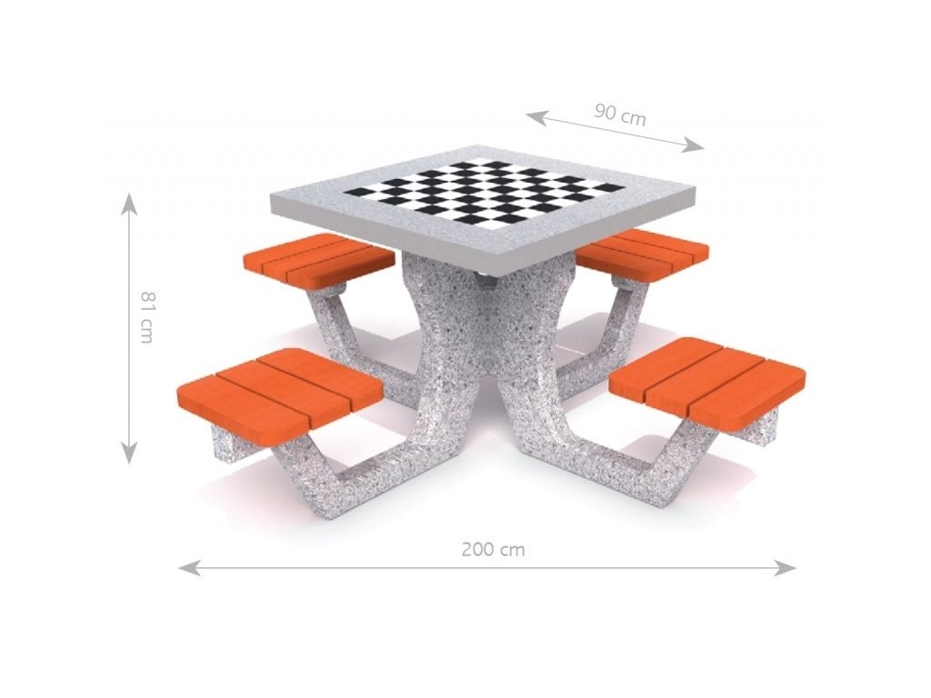 Betonový set 4* stolička okolo stolu s herní deskou čtverec - šachy pro venovní použití.