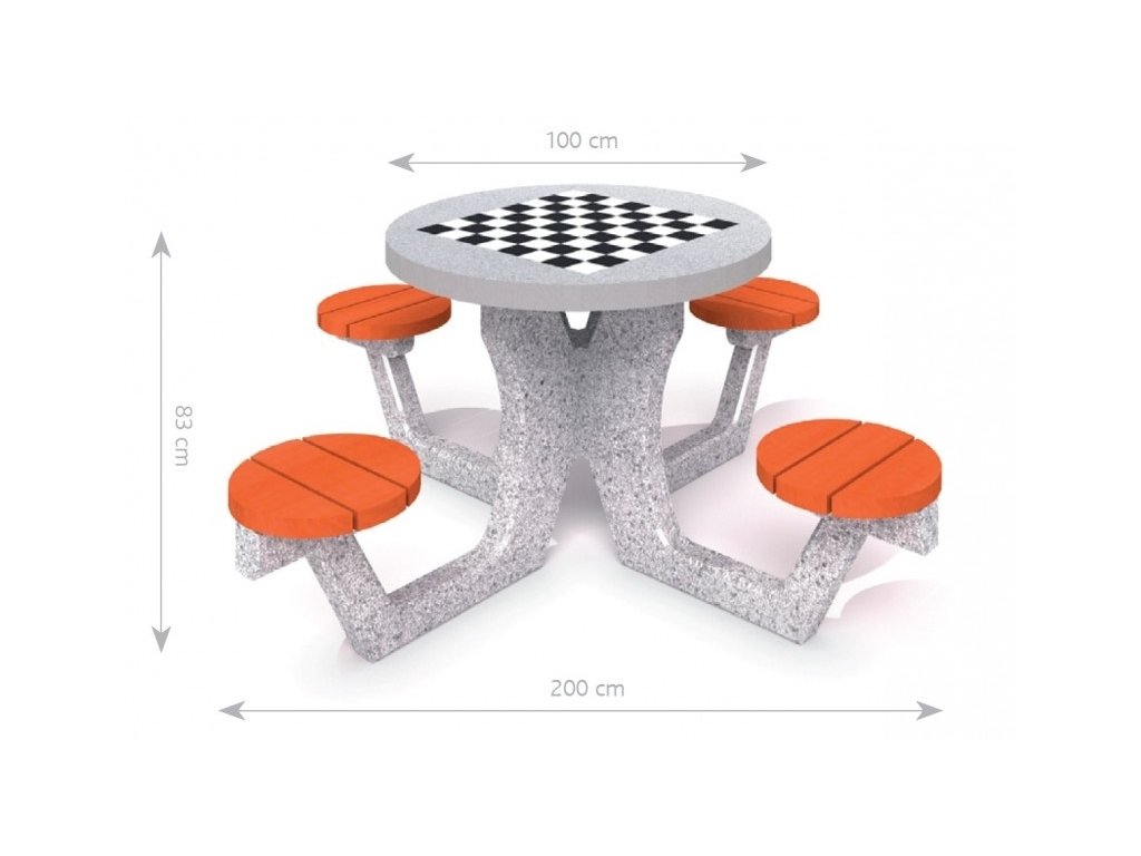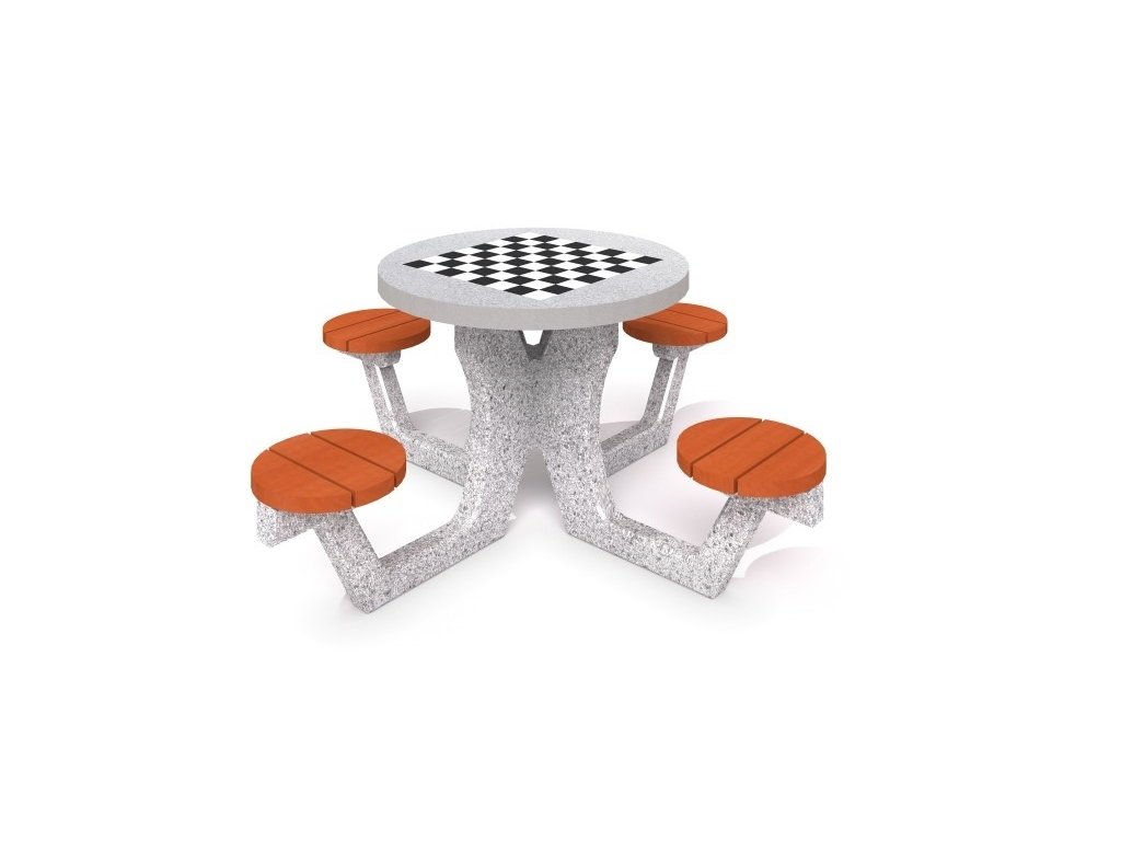 Betonový set 4* stolička okolo stolu s herní deskou kruh - šachy pro venovní použití.