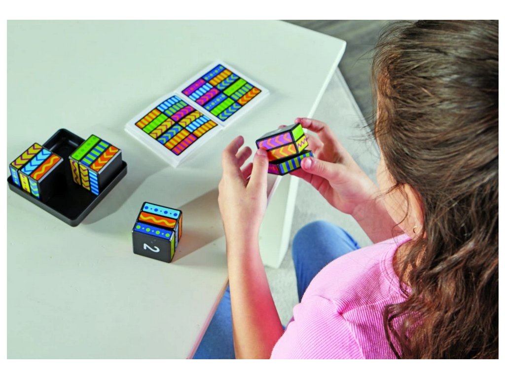 Kostky můžete otáčet, posunovat a klikat, abyste vytvořili určený vzor podle přiloženého průvodce. Pokyny obsahují více než 40 různých výzev, které stimulují kreativní a kritické myšlení, podporují jemnou motoriku a trénují trpělivost i prostorové vnímání.