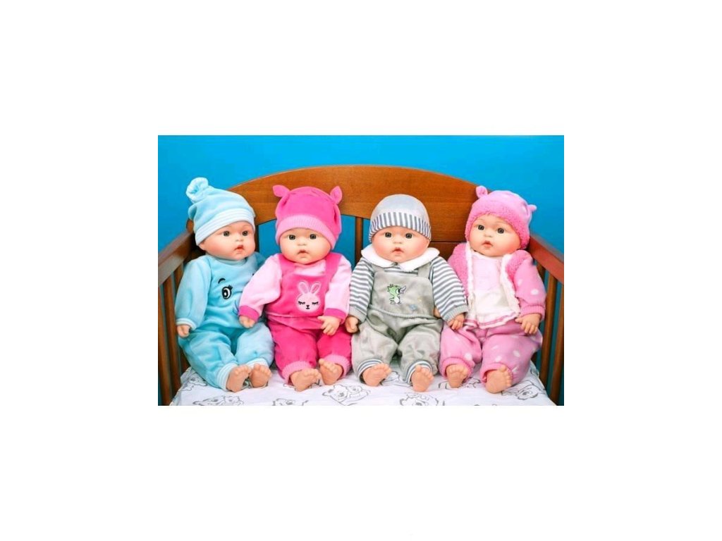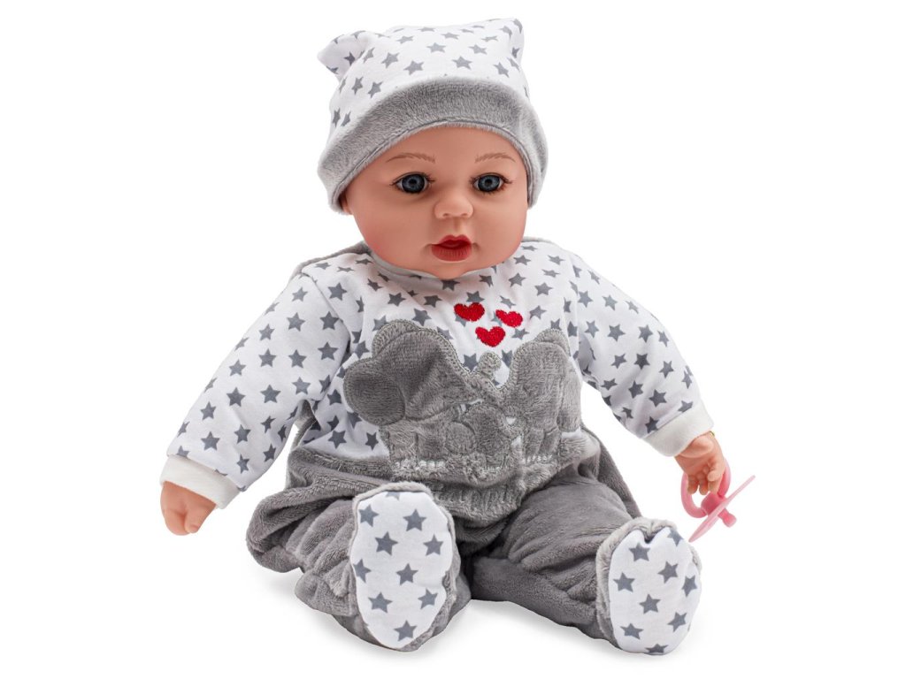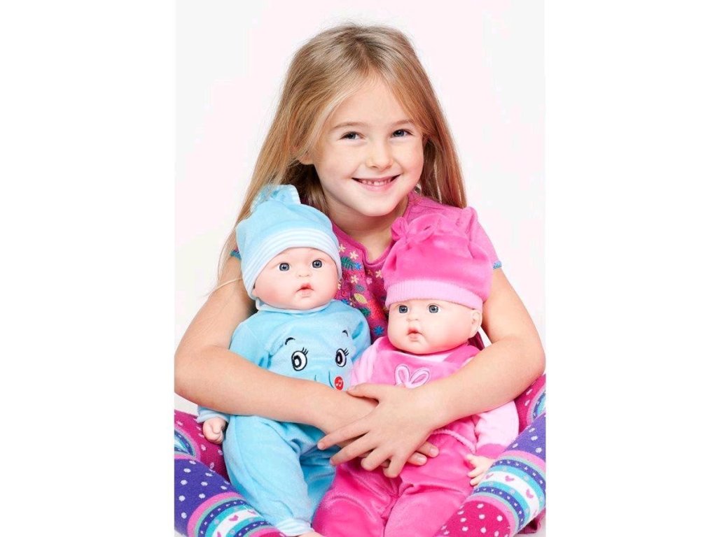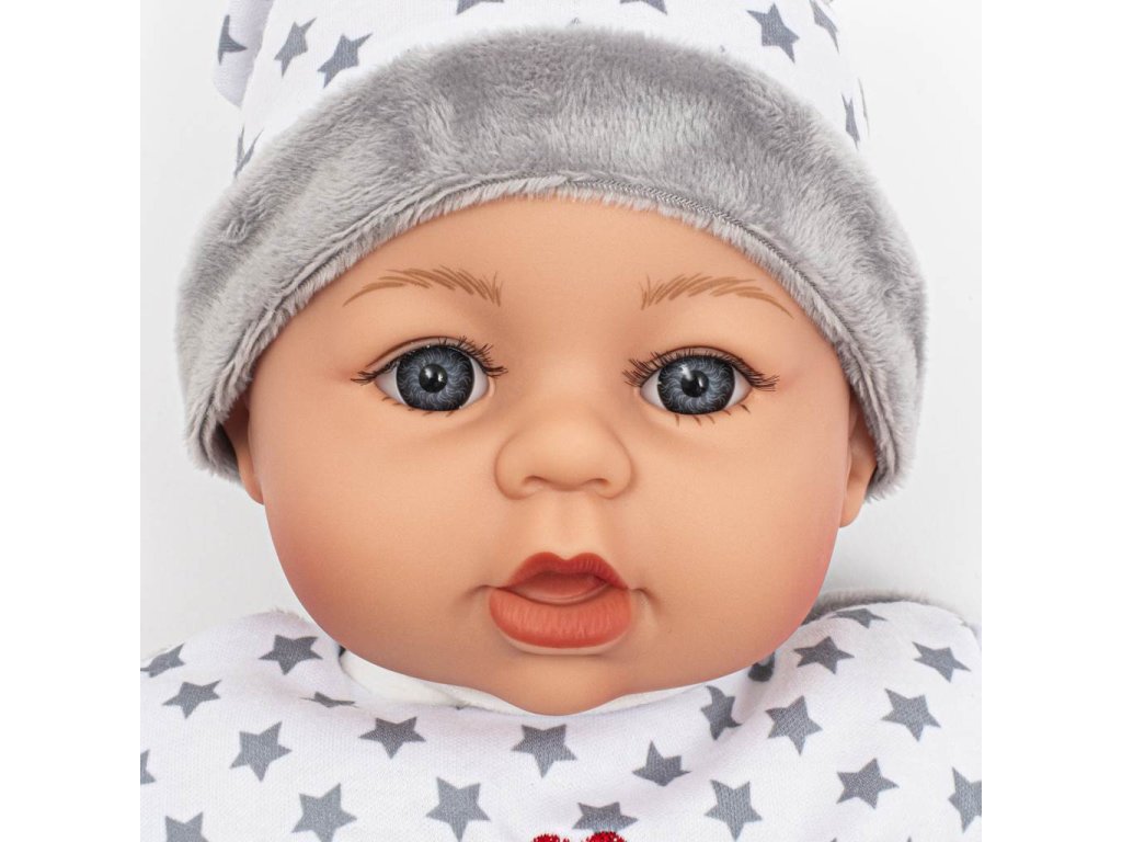 Krásná dětská panenka PlayTo. Skvělá hračka pro každou holčičku, která bude mít svoje mluvící miminko. Hlava, ruce a nohy jsou vyrobeny z gumy, tělíčko pak z měkkého materiálu, díky čemuž se může dítě k panence krásně přitulit. Panenka má dudlík. Panenka má milou tvářičku, která vypadá jak opravdové miminko a získá si srdce holčičky svými modrými kukadly a růžovými rtíky. Má roztomilé oblečení a čepičku. Oblečení lze sundat a vyprat. Délka panenky je 46 cm, je zabalená v barevné krabici a hodí se jako milý dáreček. Panenka má modul, který mluví 4 jazyky: polsky, česky, slovensky a maďarsky.Modul po stisknutí přehrává 5 písní a mluví 14 českých vět.