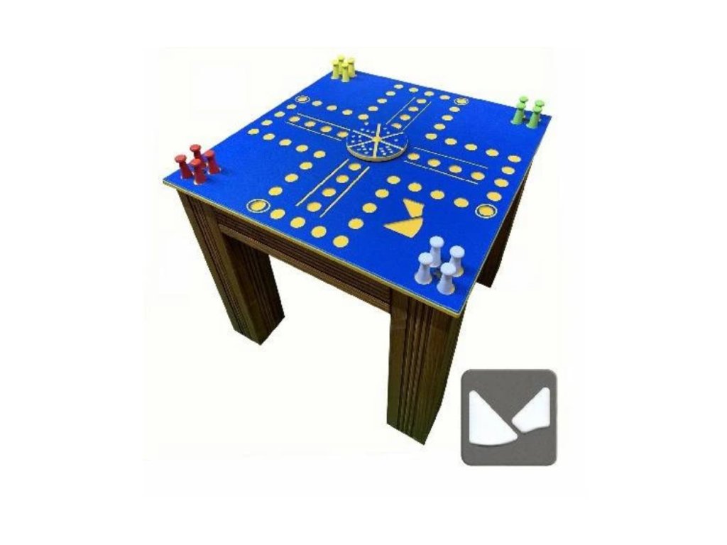 Klasická hra „Člověče, nezlob se“ kde kostka je nahrazena zabudovaným točícím kolem. Figurky jsou dřevěné, ale hra se dá provozovat i s např. barevnými kamínky apod.