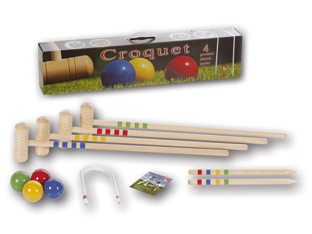BALENÍ OBSAHUJE: 4 hole, 4 barevné koule, 2 dřevěné kolíky a 10 branek