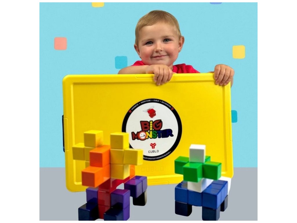 CUBLO Big Monster je velká stavebnice pro děti od 1 roku s bezpečnými zaoblenými dílky, ze kterých si postaví zvířátka, stavby i vlastní příšerky – vše uložené v pevném plastovém boxu.