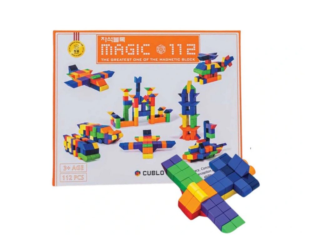Cublo Magic Cube 112 je magnetická stavebnice se 112 kostkami, trojúhelníky a poloválci pro 3D stavění, matematiku a rozvoj STEM dovedností. Ideální do školky i domů.