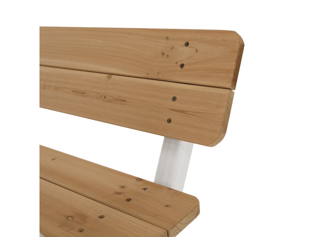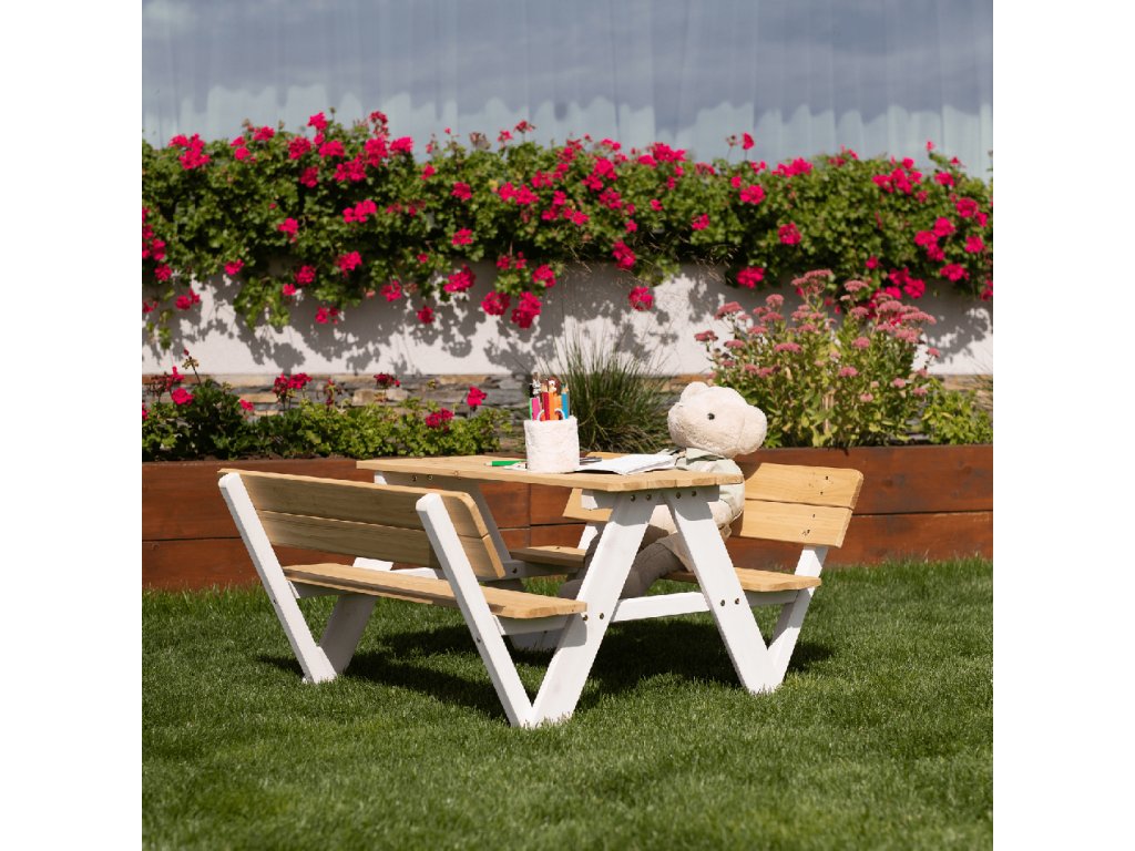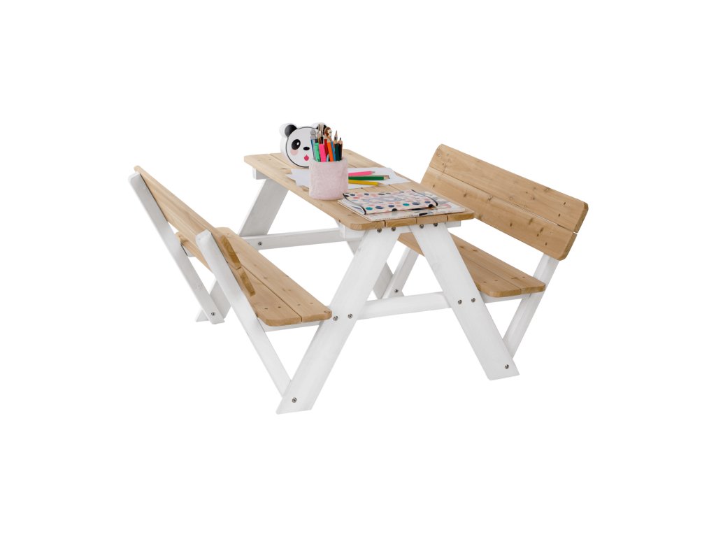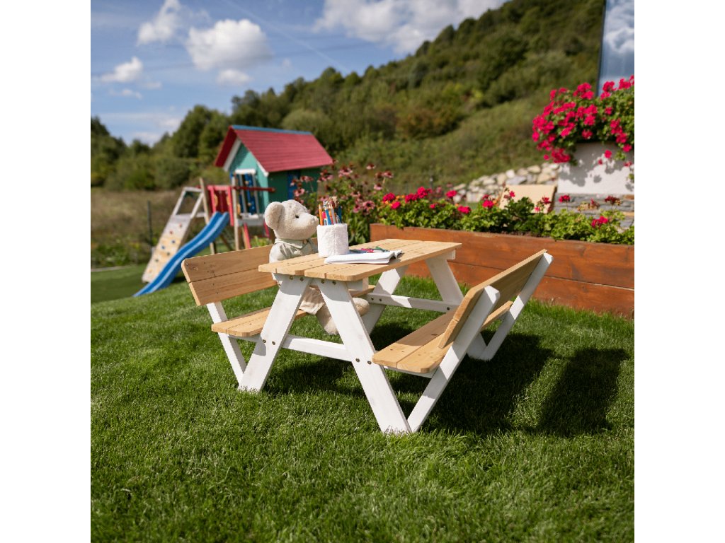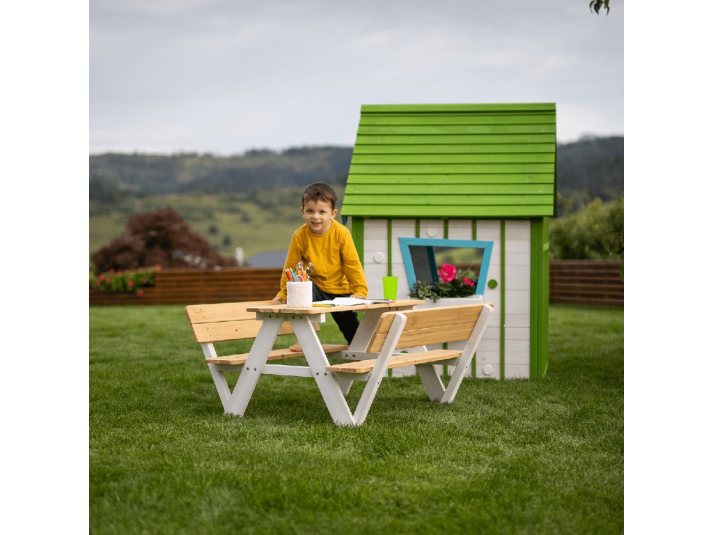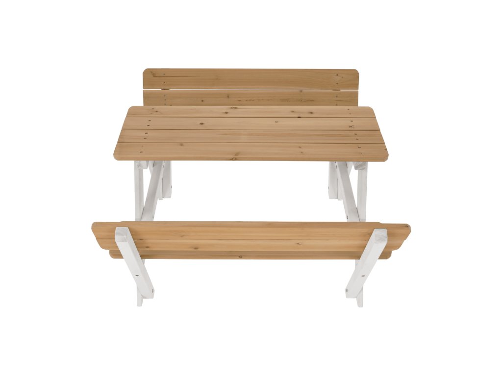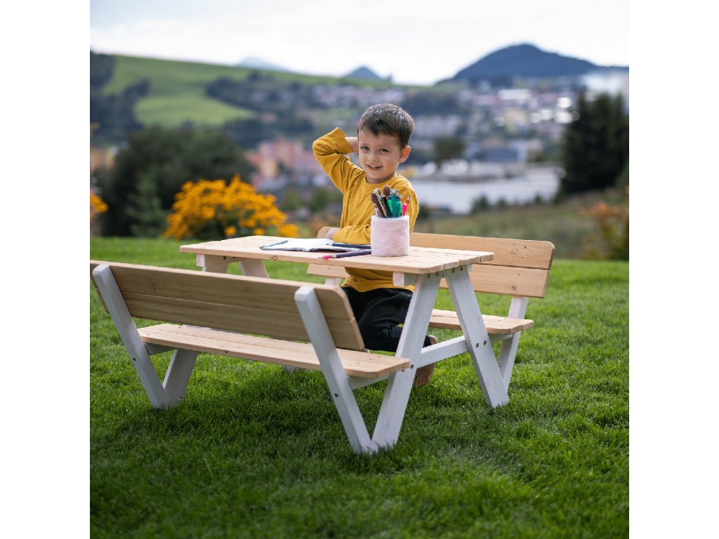 Sestává z dvou laviček a stolku a je vyroben z kvalitního masivního dřeva, které zaručí vašim dětem pocit jistoty a bezpečí.