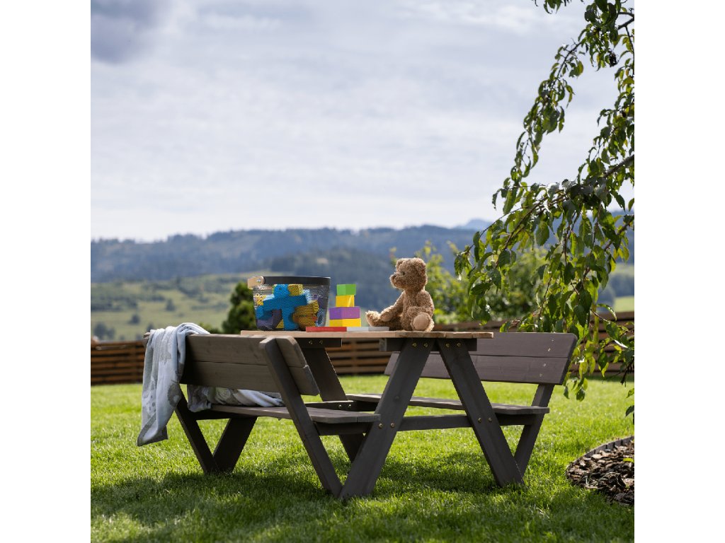 Sestává z dvou laviček a stolku a je vyroben z kvalitního masivního dřeva, které zaručí vašim dětem pocit jistoty a bezpečí.