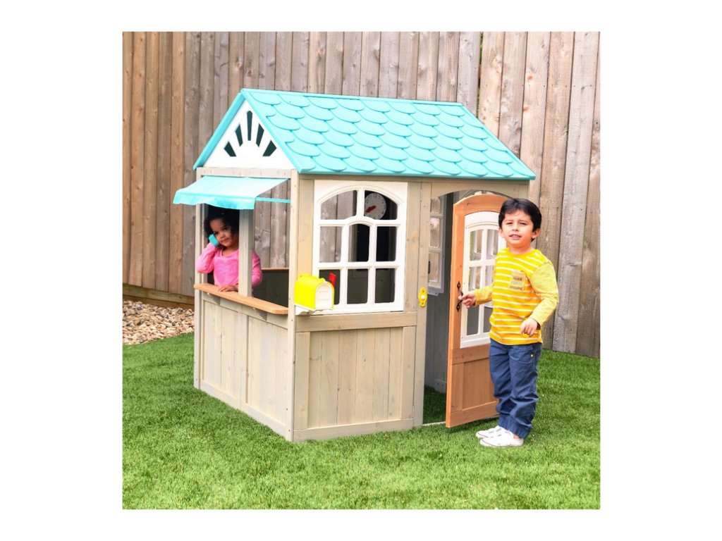 Mohou si hrát na kavárnu, či bistro a povídat si u pultíku se svými přáteli, zavolat kamarádům bezdrátovým telefonem (atrapy). Nepřekvapí je ani nečekaná návštěva, která se ohlásí dveřním zvonkem. Jako správní hostitelé mohou děti svou návštěvu pohostit dobrůtkami servírovanými na barový pultík, mohou si i společně přečíst poštu, kterou si vyzvednou v dopisní schránce. Menu, které budou děti servírovat mohou vypsat na tabuli, která je součástí vybavení domečku, včetně času servírování - součástí domečku jsou také hodiny s nastavitelnými ručičkami. Vstup do domečku je zajištěn prostornými dveřmi, rustikální okna s truhlíky jen dokreslují iluzi opravdového domu. Domeček je také vybaven velkým oknem francouzského typu a dalšími okénky. Střecha domečku je v tyrkysovém provedení. Celý domeček je designově zbarvený.