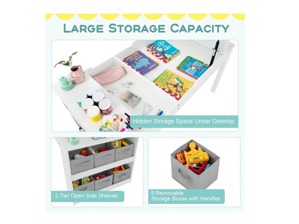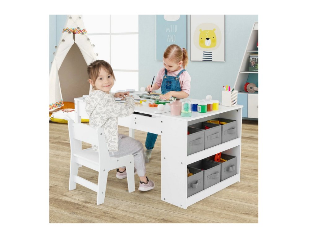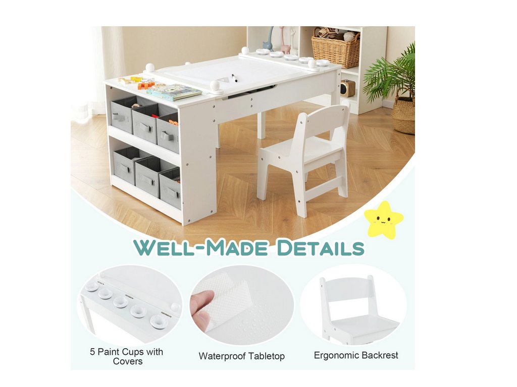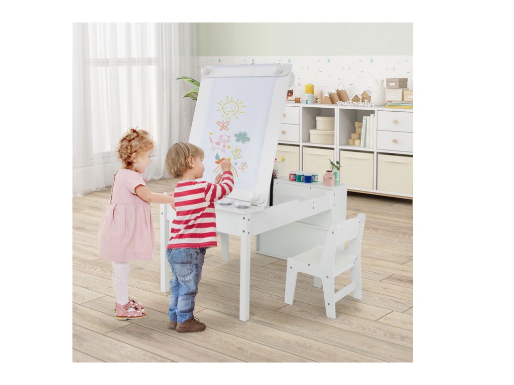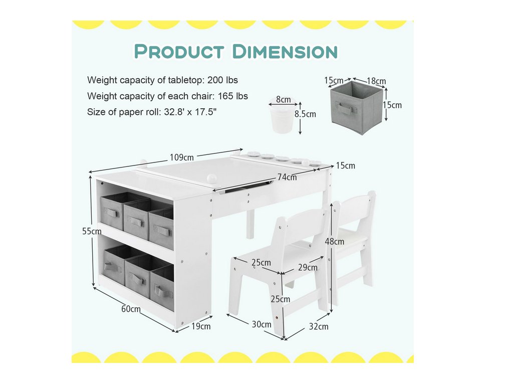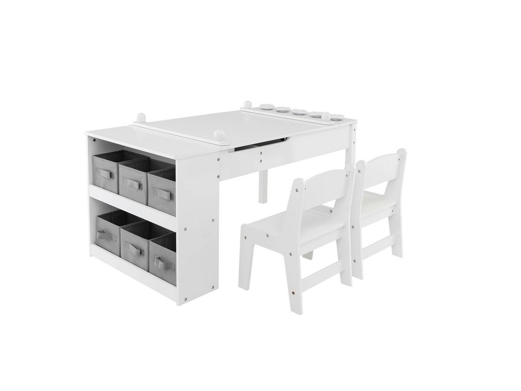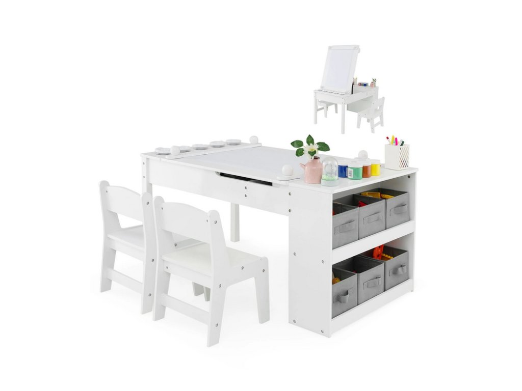 Tento moderní dětský Montessori stůl 2v1 je ideální volbou pro každého malého umělce, stavitele nebo objevitele. Multifunkční design v sobě spojuje pracovní stůl, kreslící tabuli, úložný prostor a učební zónu – vše v krásném bílém provedení, které ladí s každým interiérem.