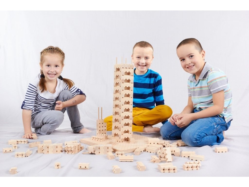 Chcete udělat radost všem dětem s velkou představivostí? Pořiďte jim tuto dřevěnou stavebnici, se kterou si budou moci postavit cokoli, co je napadne. Vytvoří raději útulnou chatku nebo obrovitánskou pevnost? Ať tak, či tak, při vytváření každé si stavby si zaručeně užijí spoustu legrace!
