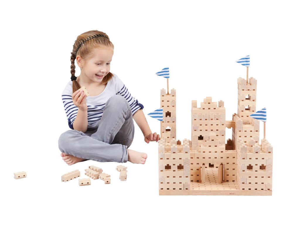 Chcete mít doma ten největší hrad na světě? S naší dřevěnou stavebnicí si ho může postavit každý. Tato sada je vhodná jak pro kluky, tak i pro holky – zkrátka pro všechny děti, které by si takový velkolepý hrad rády postavily. Ale nemusí zůstat jen u toho – když budou chtít, mohou ze stavebnice vytvořit cokoli, co je napadne.