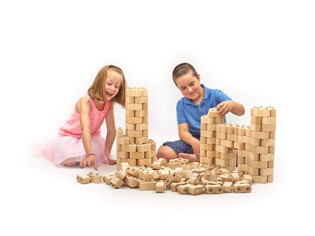 Naše dřevěná stavebnice Godi je ideální pro všechny děti, které rády staví podle fantazie. Kostky jsou zaoblené a díky kolíkům do sebe lehce zapadají. Práce s touto stavebnicí je tak snadná i pro ty nejmenší. Můžete si z ní společně postavit cokoli, co vás napadne – její možnosti jsou omezené pouze vaší představivostí! Postavíte si obrovský hrad, ohrádku pro zvířátka, nebo věž vysokou až do nebe? V každém případě si při hraní užijete spoustu legrace!