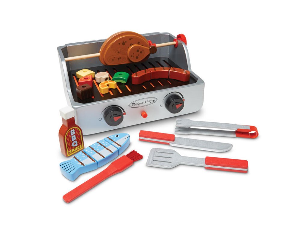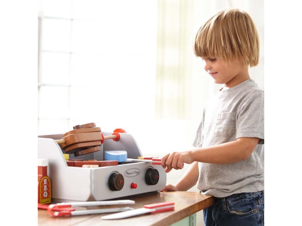 Dřevěná grilovací sada s grilem podporuje koordinaci rukou a očí, jemné motorické dovednosti, kreativní výraz a nápaditou hru.