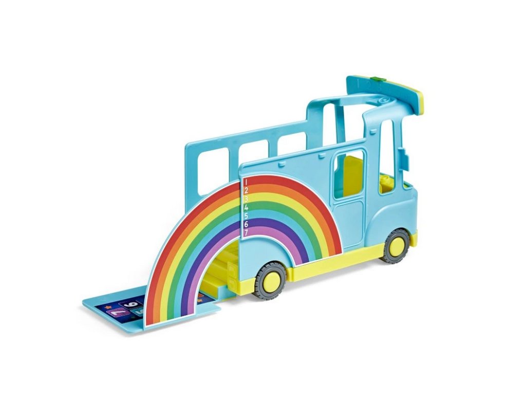 Autobus hraje 12 písniček a zvuků z TV série. Děti mohou pomocí slideru vybrat cílové místo, a díky sklápěcímu zadnímu panelu vidí duhu – zároveň jim autobus vizuálně ukazuje barvy v řadě, a na druhé straně také ilustrace čísel One až Seven. Hra zprostředkovává základy počítání, sledování sekvencí a zábavně motivuje k interaktivnímu učení. Součástí balení je také figurka Seven a arch samolepek pro dekoraci.