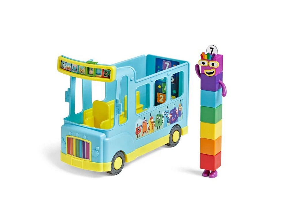 Duhový počítací autobus Numberblocks® přináší interaktivní vzdělávací jízdu plnou písní, zvuků a počítání s oblíbenou postavičkou Seven a duhovými efekty.