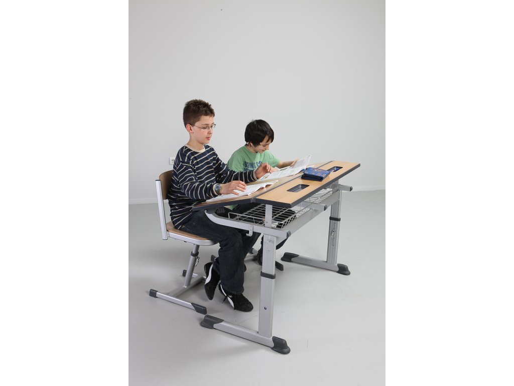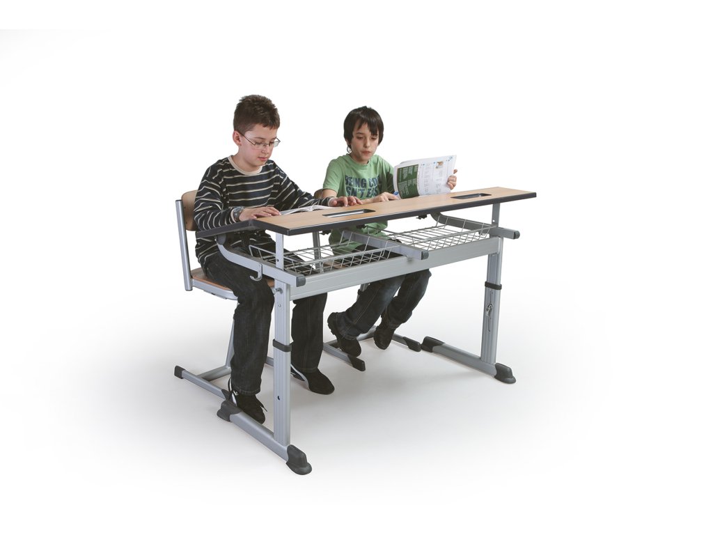 Dvoumístná žákovská lavice, buková laminovaná deska, na kolečkách