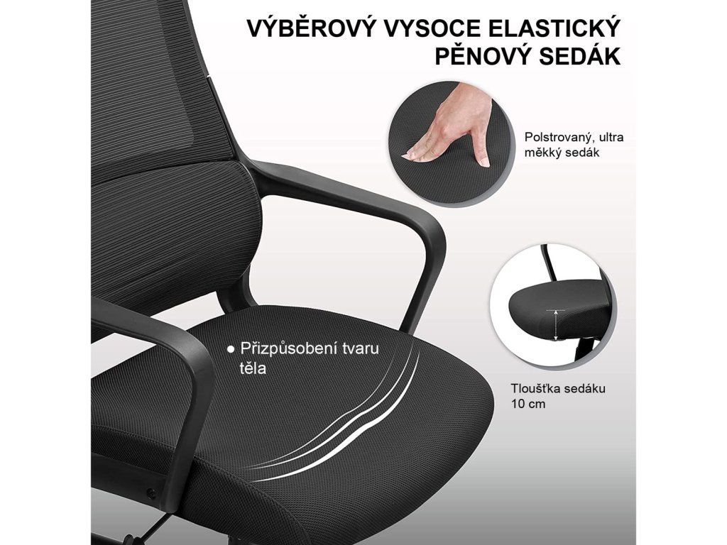 - prodyšná síťovaná židle s měkkým čalounem a polstrovanou opěrkou hlavy