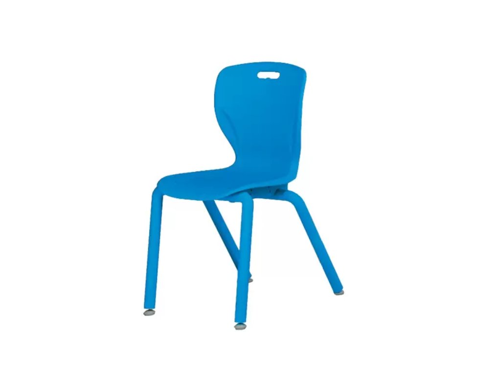 - Jednodílný profilovaný sedák a opěrák v modré barvě, vyrobený z plastu