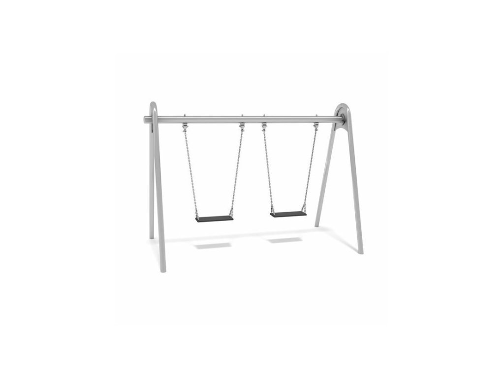 Masivní nerezová houpačka pro dvě děti antivandal - výška pádu do 1 m, není třeba speciální dopadové plochy. Sedáky s ocelovou výztuží a pevnou konstrukci. Certifikovaná dle EN 1176.
