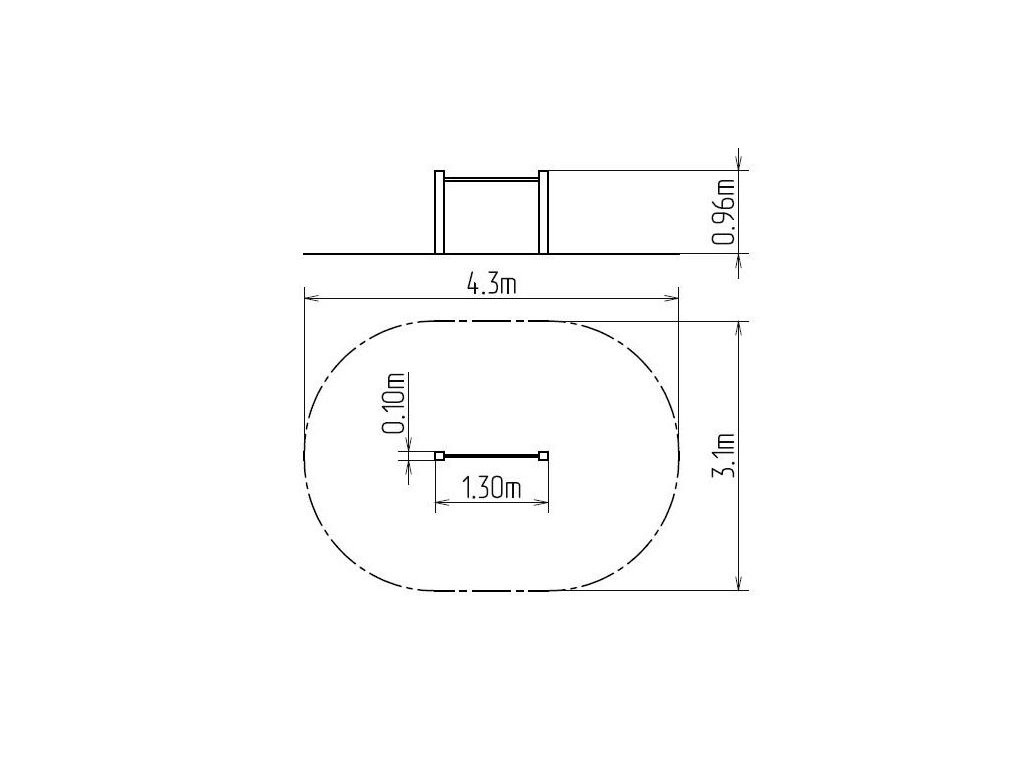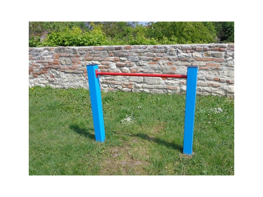 Hrazda - celokovová, výška pádu 1 m, jako dopadová plocha postačí trávník. Na výběr jsou tři barevné varianty konstrukce - hnědá, červená a modrá.