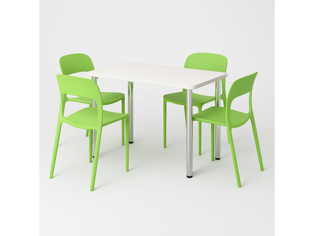 Jídelní set - stůl 120 x 80 cm, deska bílá, nohy chrom + 4 zelené židle