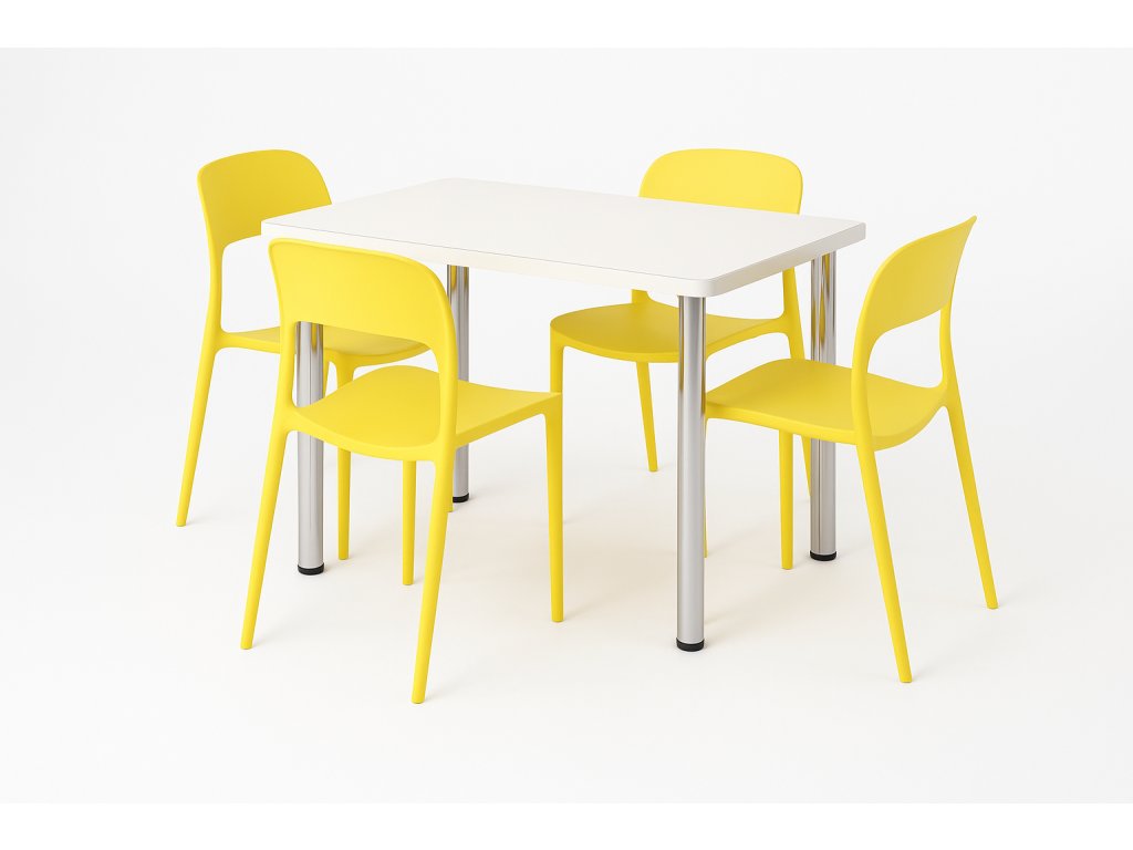 Jídelní set - stůl 120 x 80 cm, deska bílá, nohy chrom + 4 žluté židle