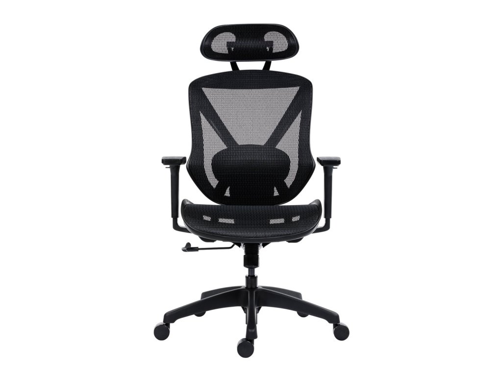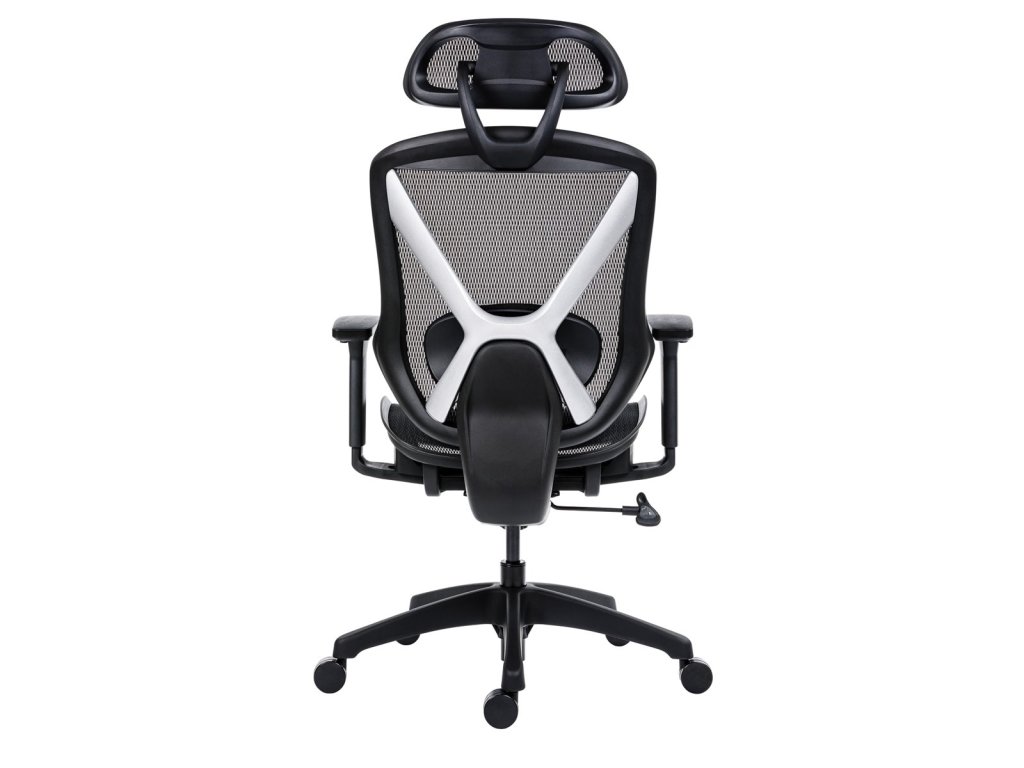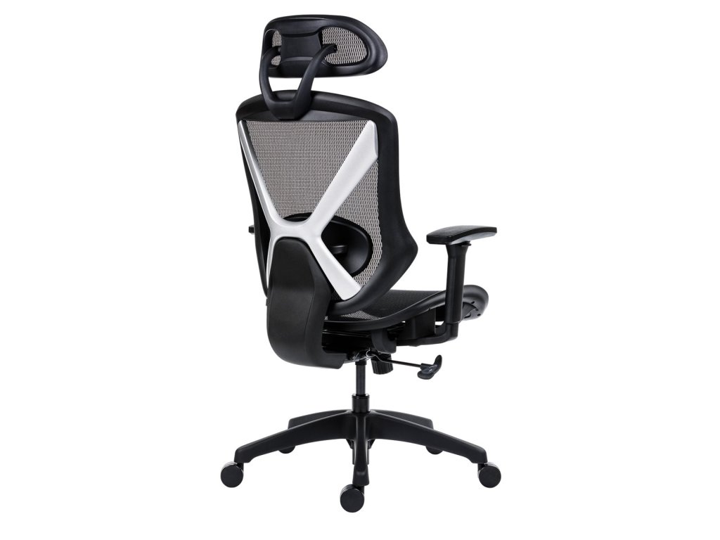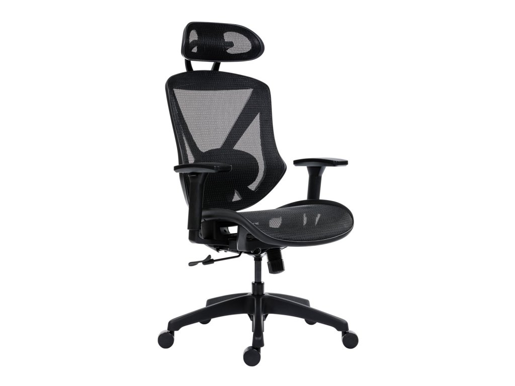 Kancelářská židle s prodyšným sedákem, opěrákem a opěrkou hlavy, konstrukční síťovina.