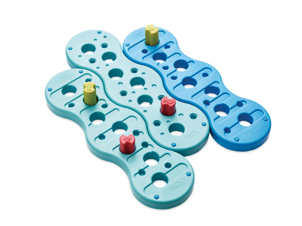 - Všechny části dráhy jsou oboustranné a každá z nich obsahuje jinou sadu bublin, otvorů a zvlněných ploch pro stimulaci nožky