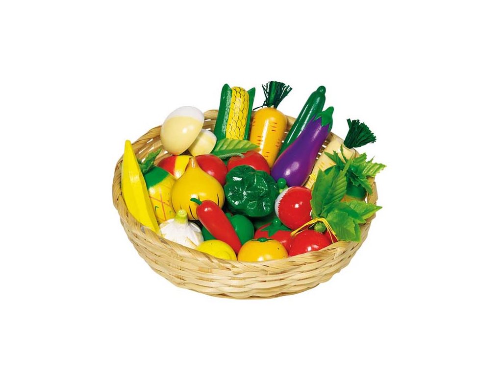Goki Proutěný košík plný dřevěného ovoce a zeleniny, 23ks