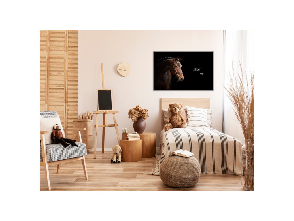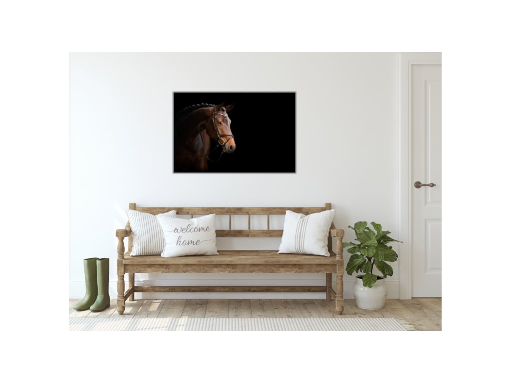 Kovová magnetická tabule - hnědý kůň na černém