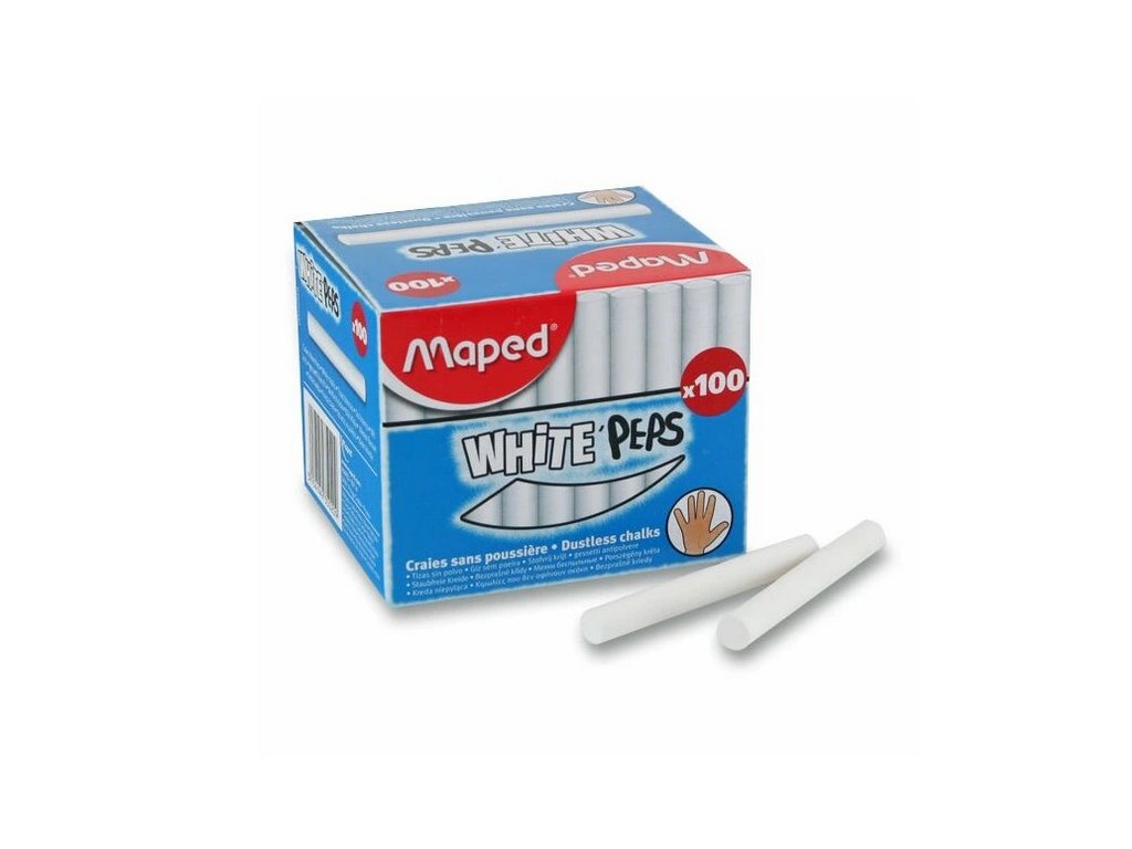 Bílé kulaté křídy. Průměr 9 mm, dlouhé 8 cm. Balení 100 ks.
