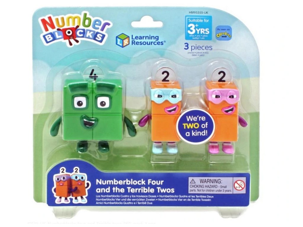 Sada figurek Four a The Terrible Twos přináší dětem možnost přenést příběhy z populárního seriálu Numberblocks do vlastních her. Děti se prostřednictvím hry učí poznávat čísla, sčítat a rozvíjet základní matematické dovednosti. Barevné figurky motivují k vytváření příběhů, rozvoji fantazie a pozitivnímu vztahu k matematice.