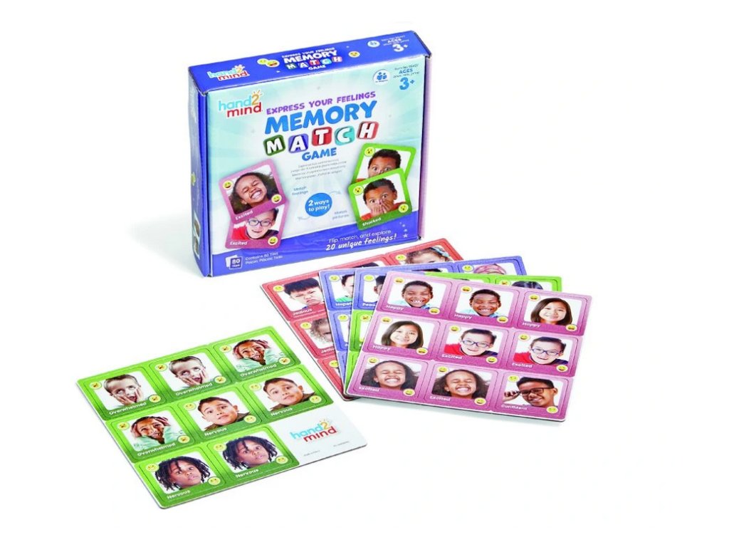 Hra Learning Resources Vyjádřete své pocity učí děti rozeznávat a pojmenovávat emoce zábavnou formou paměťové hry.