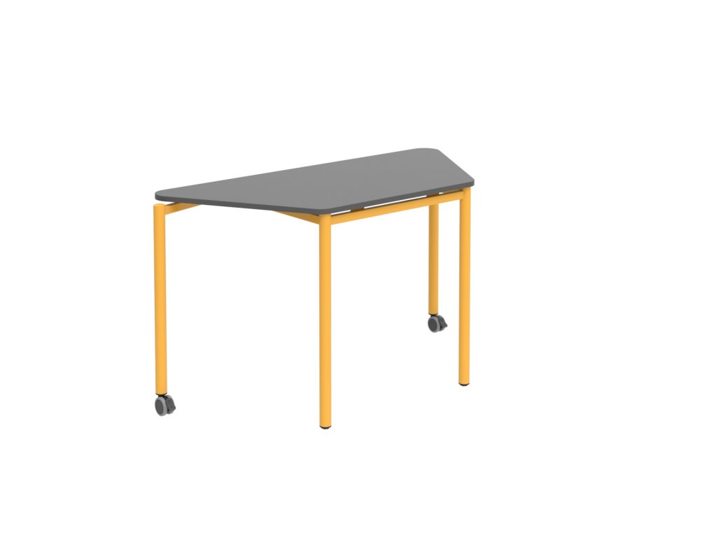 Lichoběžníkový stůl jednomístný, stohovatelný, zařaditelný, 2 kolečka s brzdou